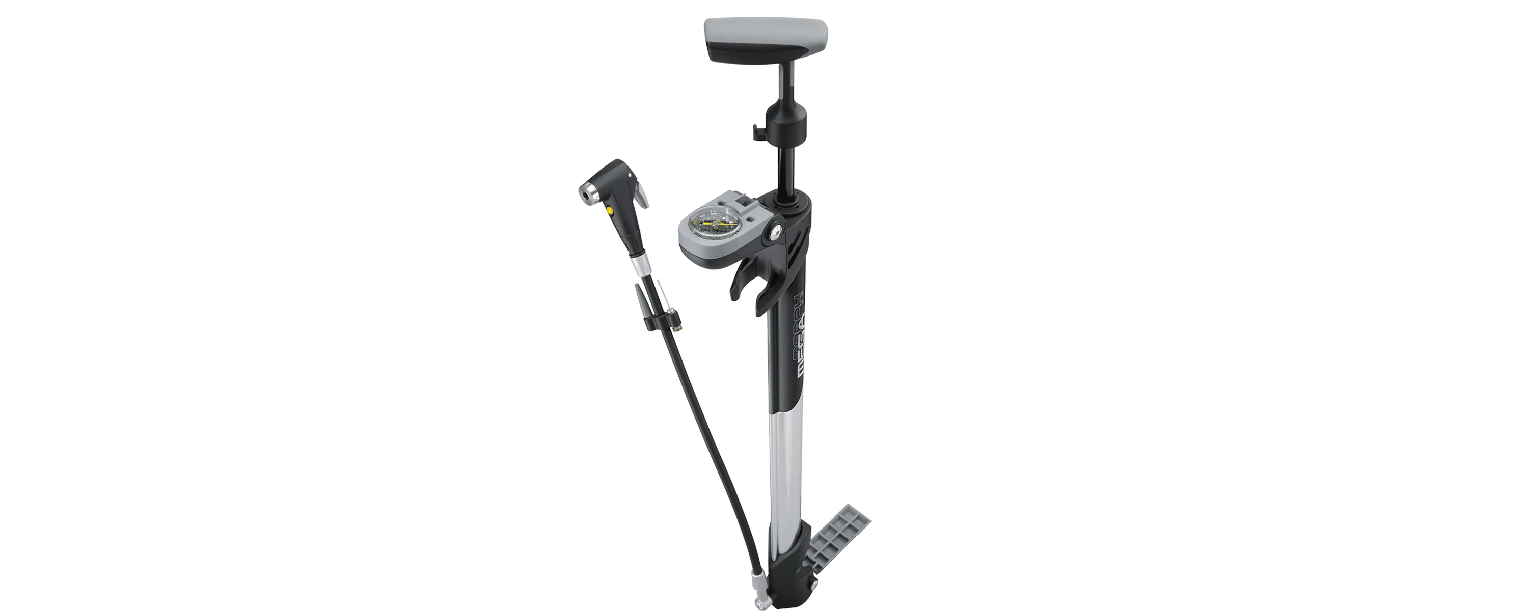 Robosztus alumínium csővel készült pumpa, mely összecsukható, könnyítve a hordozást. Kihajtható lábaival, nyomásmérőjével és T-markolatával, stabil pumpálást biztosít. Smartheaddel pedig szétszerelés nélkül kezeli a Presta és Schrader szelepeket. Pontos méretei: 67,8 x 8,4 x 6 cm